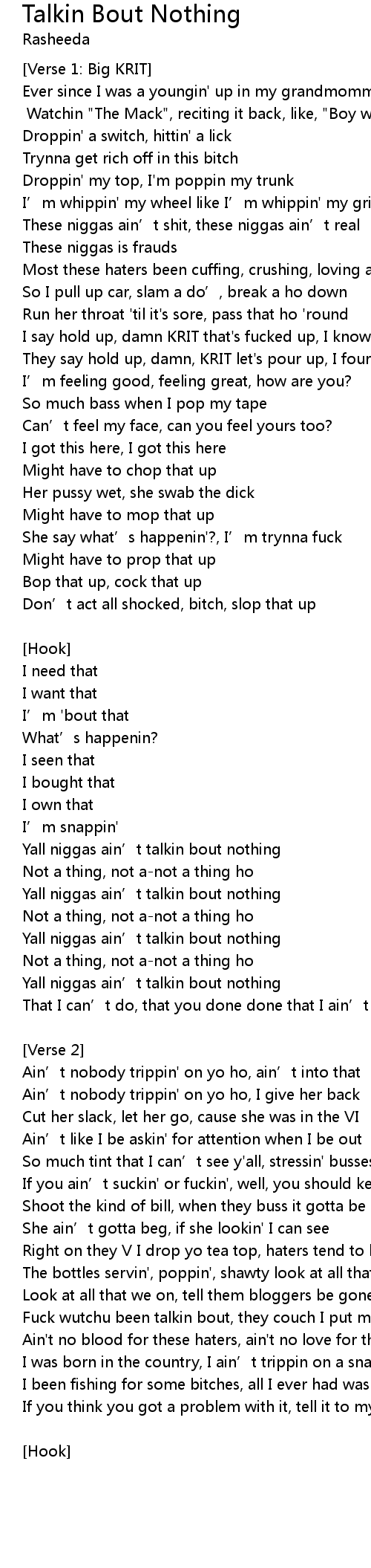| Song | Talkin Bout Nothing |