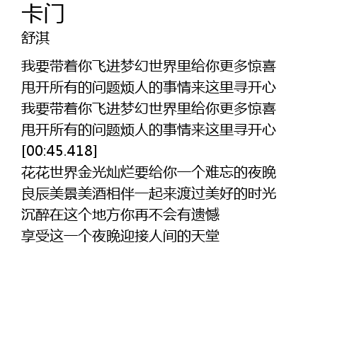 | [00:22.339] | 我要带着你飞进梦幻世界里给你更多惊喜 |