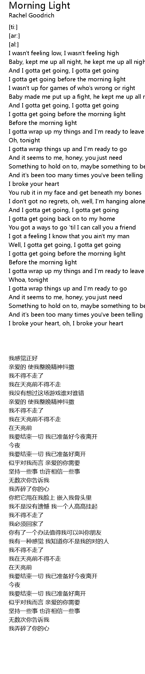 I gotta get going before the morning light |