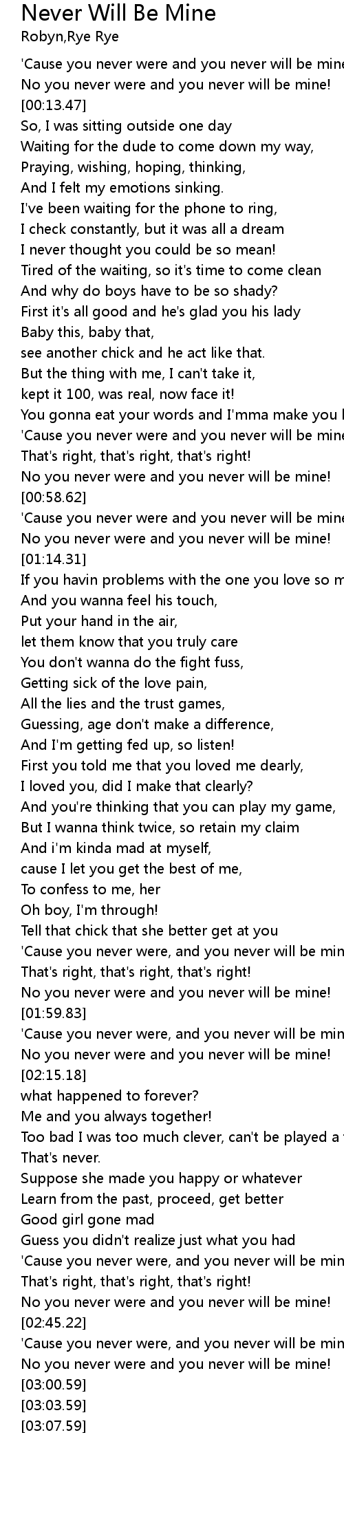 | [00:45.86] | 'Cause you never were and you never will be mine! |
