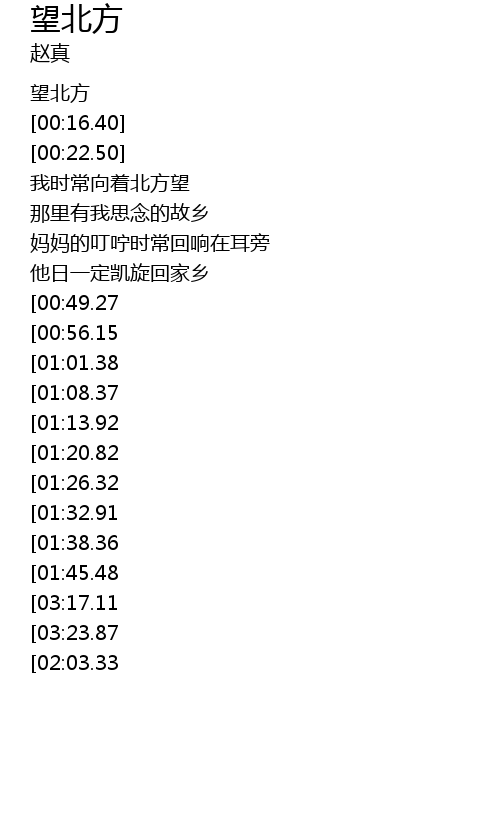 | [02:15.32][00:49.27] | 我时常望着北方想 |