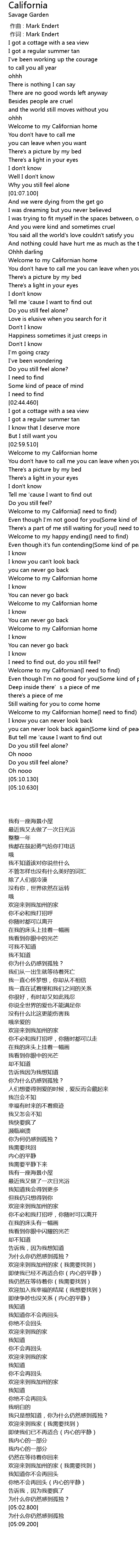 | [04:44.740] | Welcome to my Californian home(I need to find) |