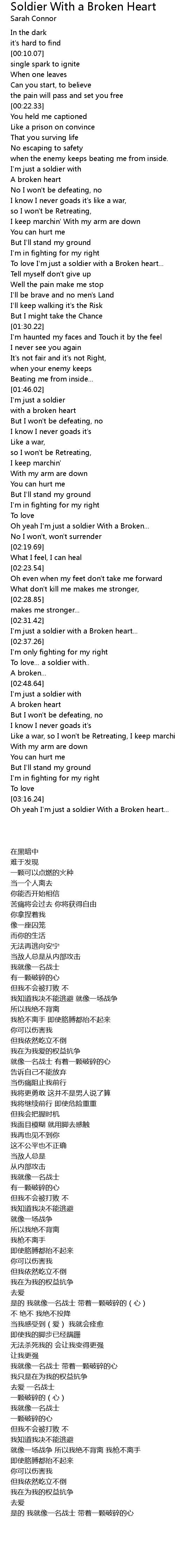 Oh yeah I'm just a soldier With a Broken heart... |