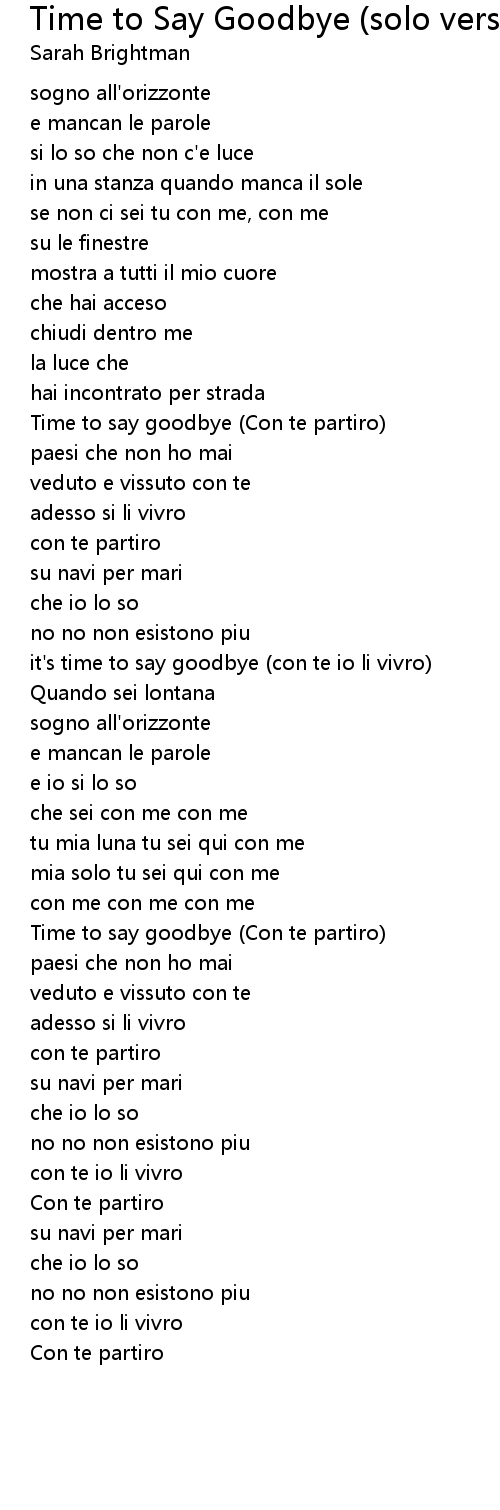 | [02:20.670] | Time to say goodbye Con te partiro |
