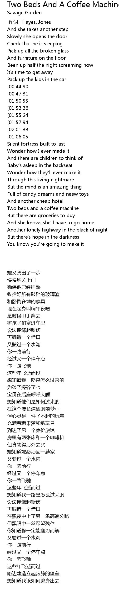 | [02:28.47][00:44.90] | Another bruise to try and hide |