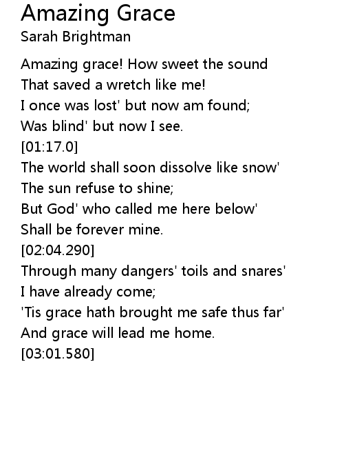 | [00:30.350] | Amazing grace! How sweet the sound |