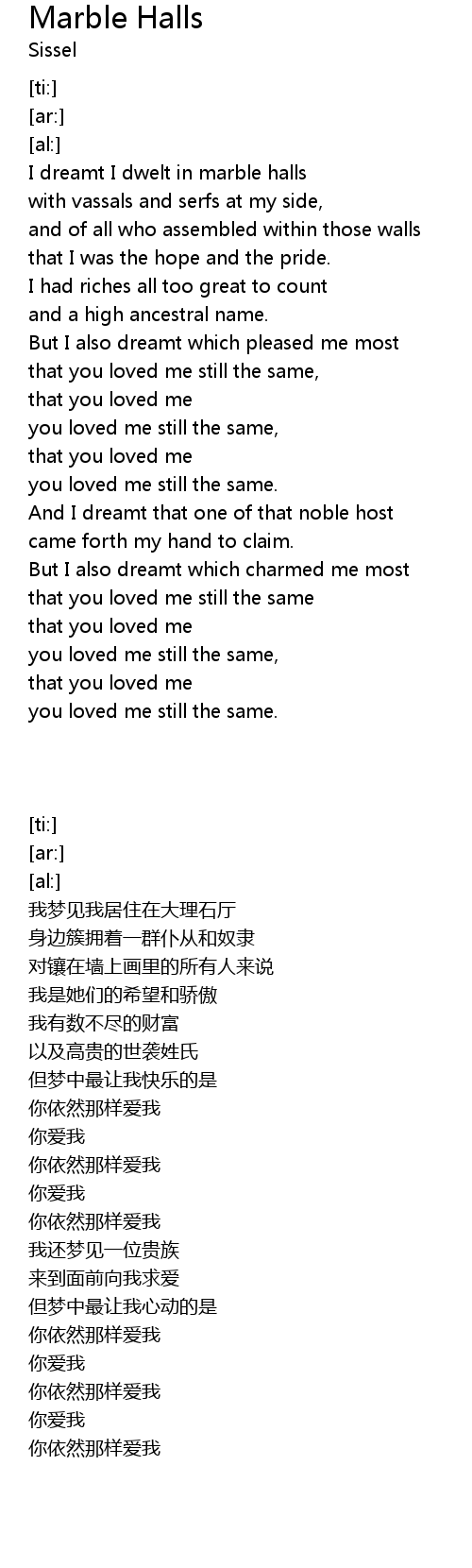 I dreamt I dwelt in marble halls |