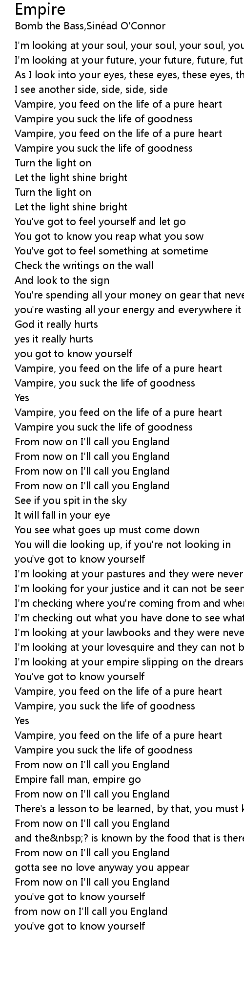 I'm looking at your soul, your soul, your soul, your soul |