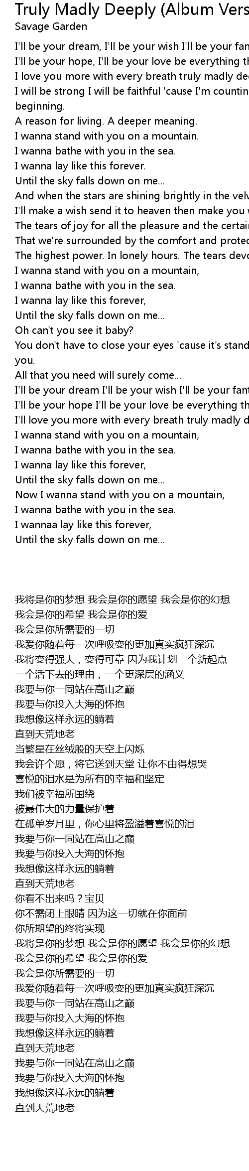 I'll love you more with every breath truly madly deeply do... |