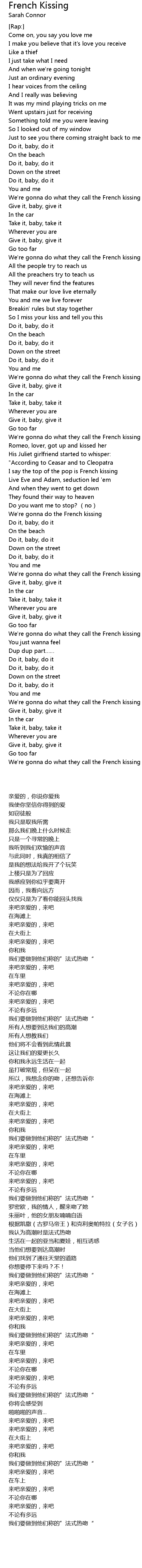 | [00:55.89] | We're gonna do what they call the French kissing |