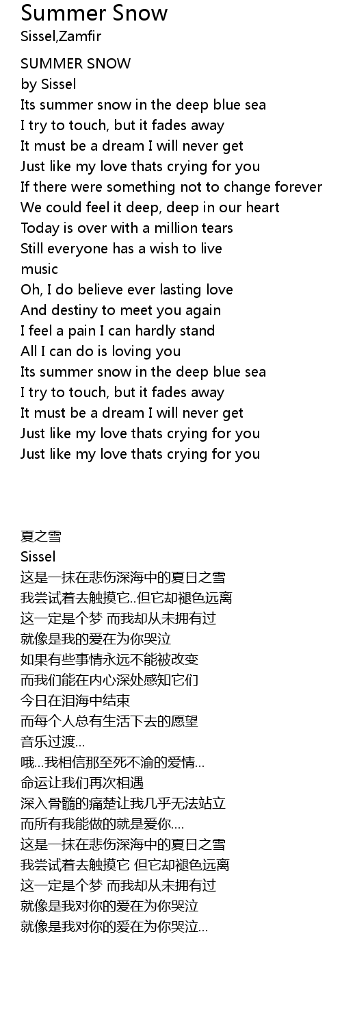 | [03:49.70] | Its summer snow in the deep blue sea |