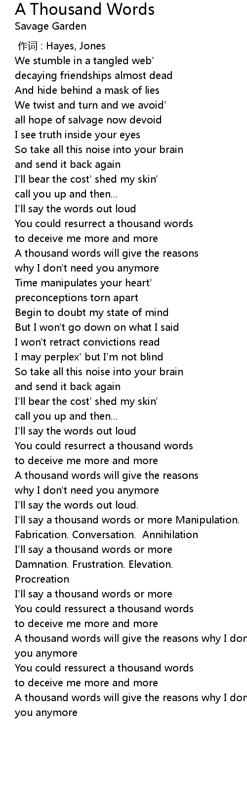 | [03:45.507] | A thousand words will give the reasons why I don' t need |