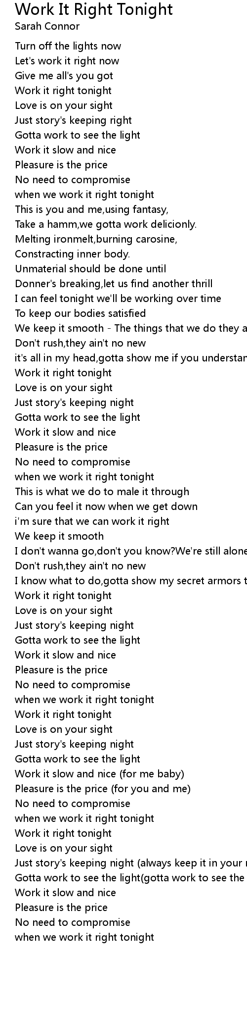 Work it right tonight |