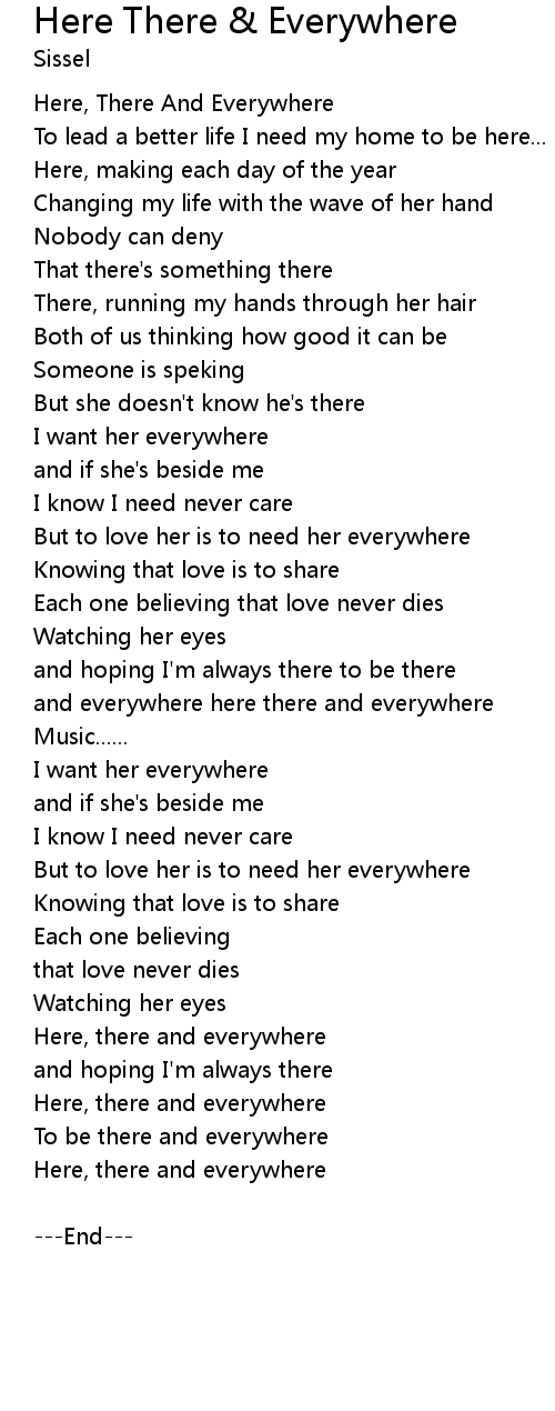 and everywhere here there and everywhere |