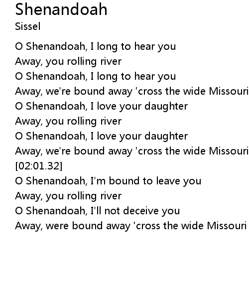| [00:38.87] | O Shenandoah, I long to hear you |