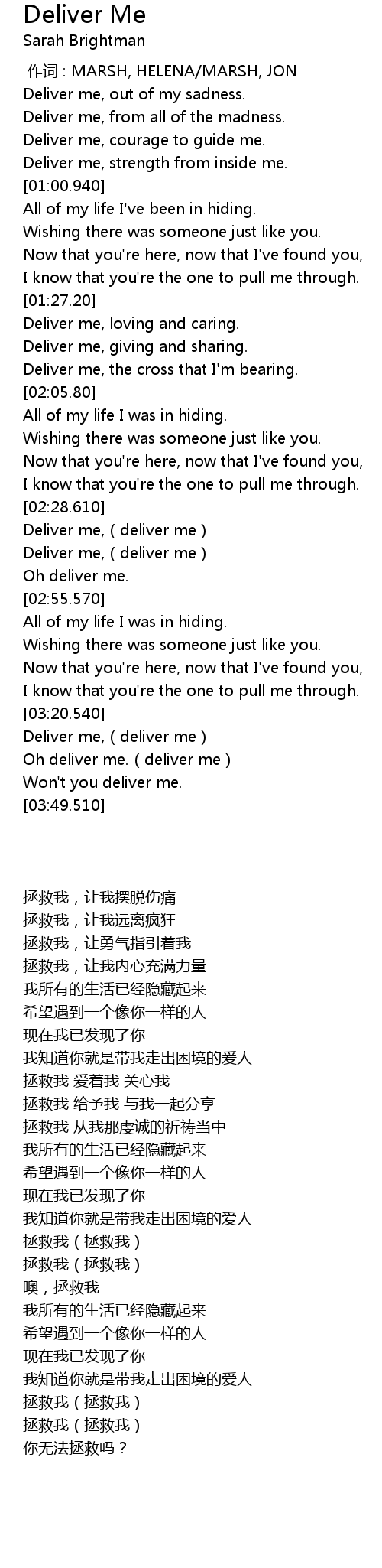 | [03:33.320] | Oh deliver me.(deliver me) |