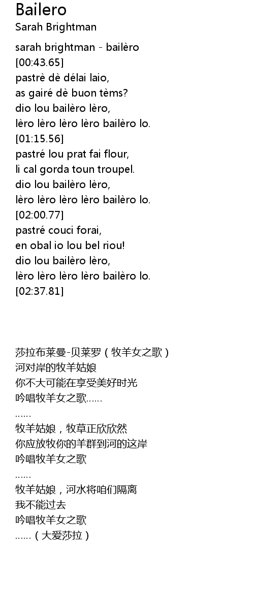 | [00:00.00] | sarah brightman - bailèro |