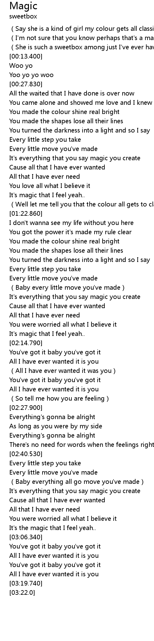 | [01:16.250] | It' s magic that I feel yeah.. |