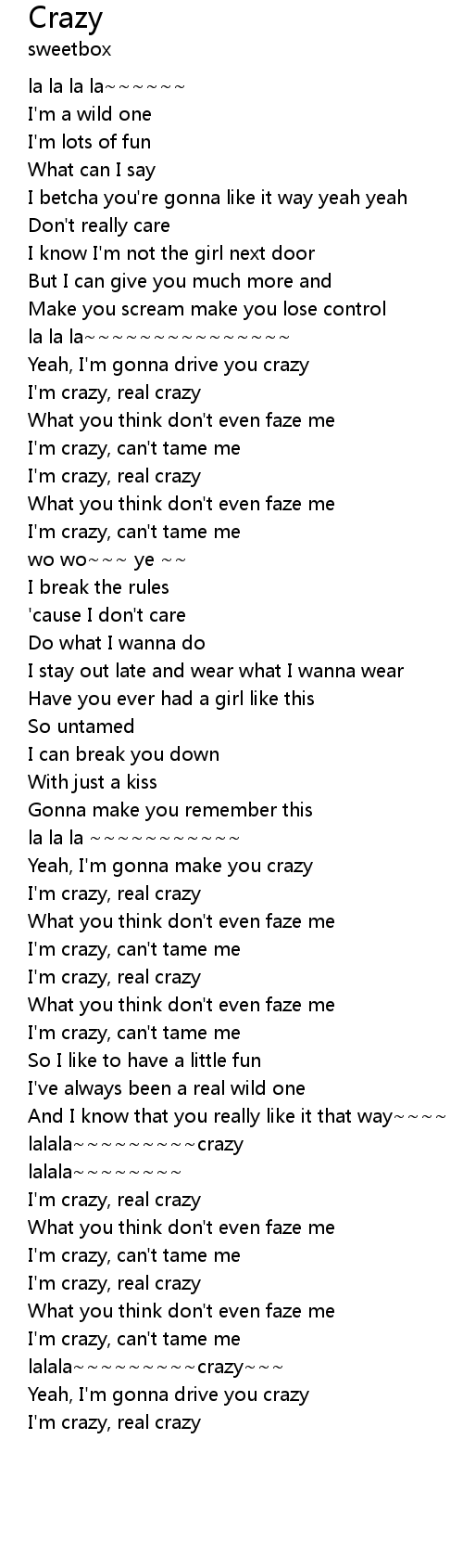 | [01:51.130] | Yeah, I' m gonna make you crazy |