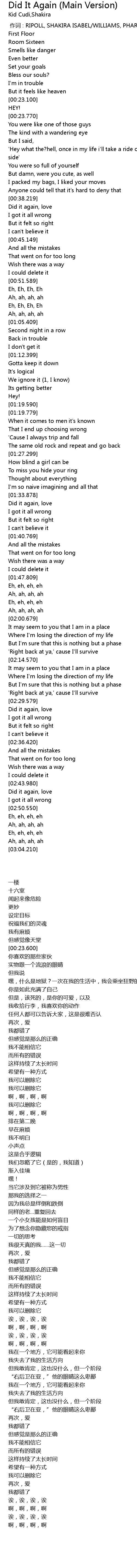 | [00:00.00] | zuo ci : RIPOLL, SHAKIRA ISABEL WILLIAMS, PHARRELL |