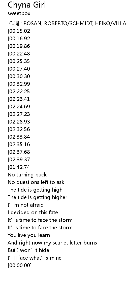 | [03:00.18][02:39.37][01:39.45][00:52.52] | That I' m your Chyna girl |