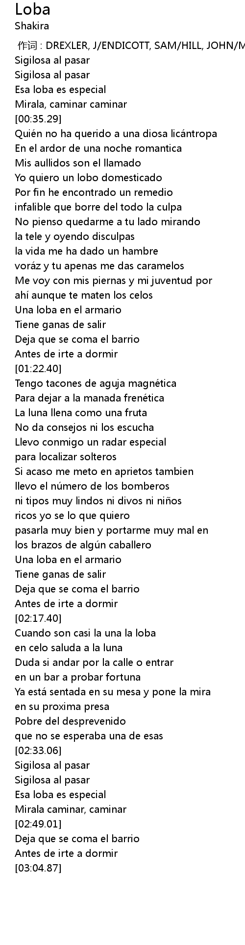 | [02:18.44] | Cuando son casi la una la loba |