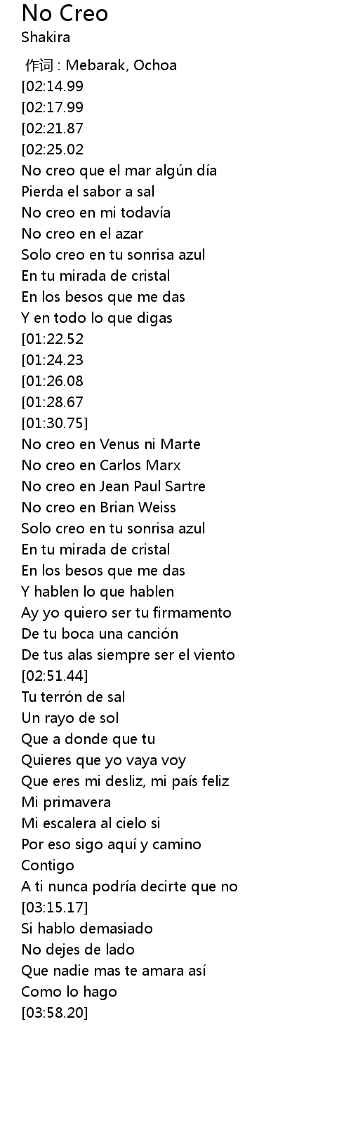 | [02:42.79] | De tu boca una cancio n |