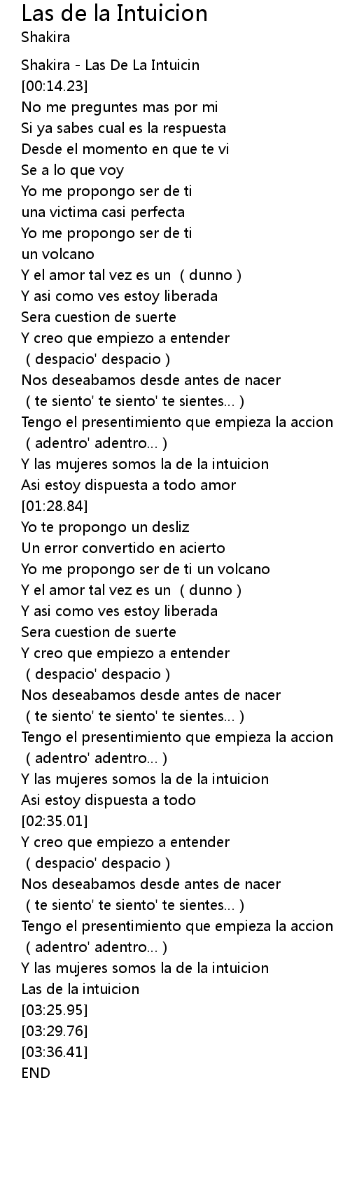 | [00:00.00] | Shakira Las De La Intuicin |