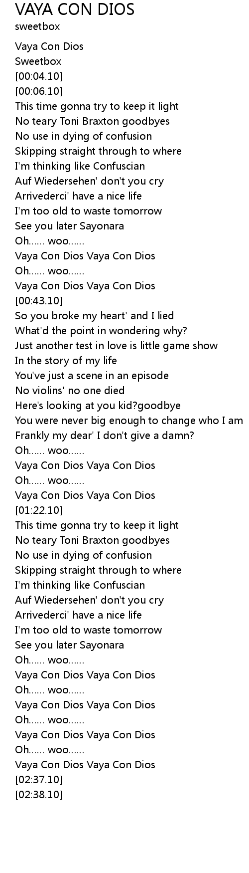 | [00:37.70] | Vaya Con Dios Vaya Con Dios |