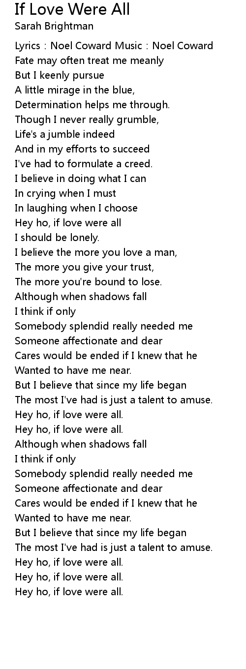 | Hey ho, if love were all | |
