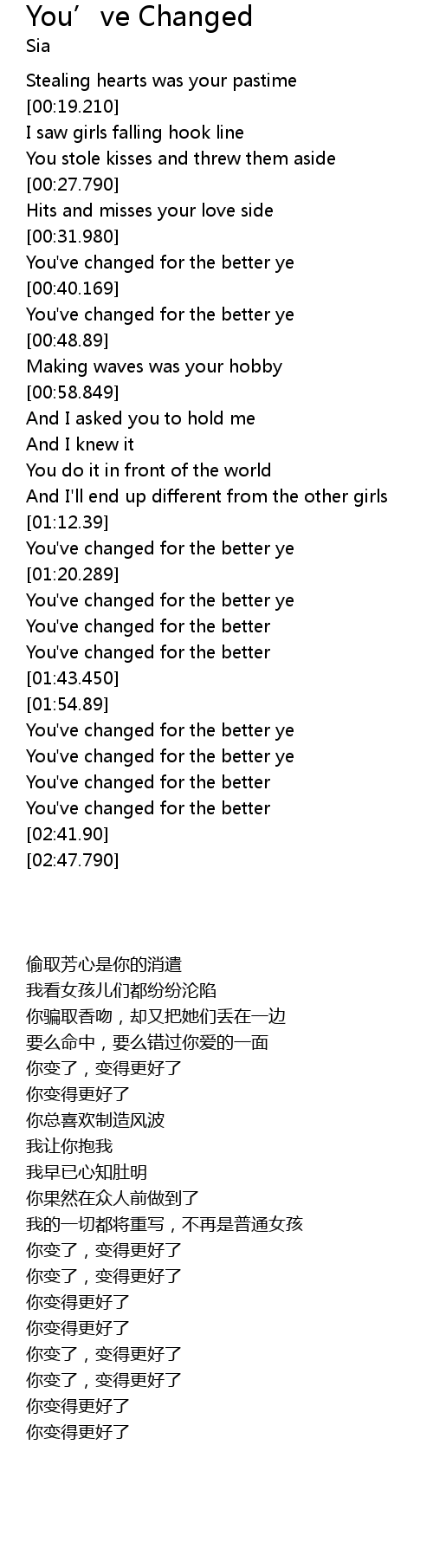 | [02:33.9] | You' ve changed for the better |