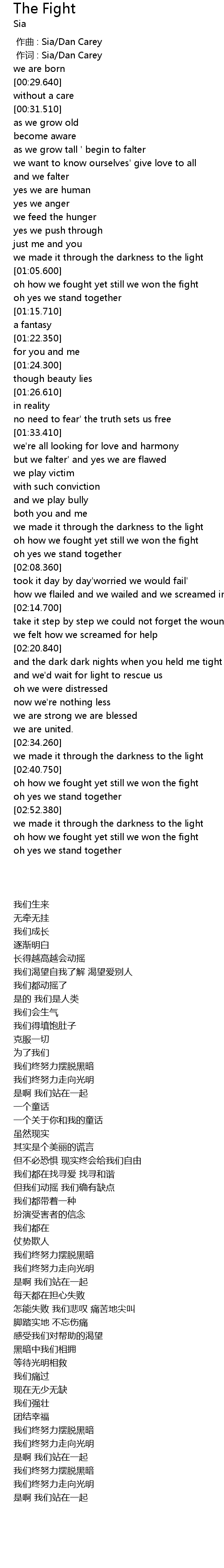 | [00:00.00] | 作曲 : Sia/Dan Carey |