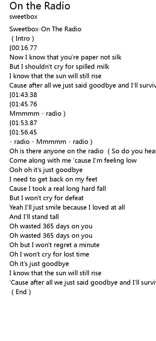 | [00:00.00] | Sweetbox-On The Radio |