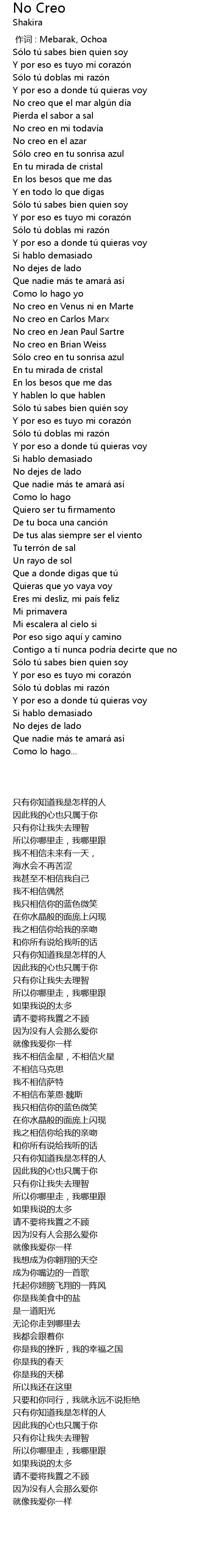 | [00:00.00] | 作词 : Mebarak, Ochoa |