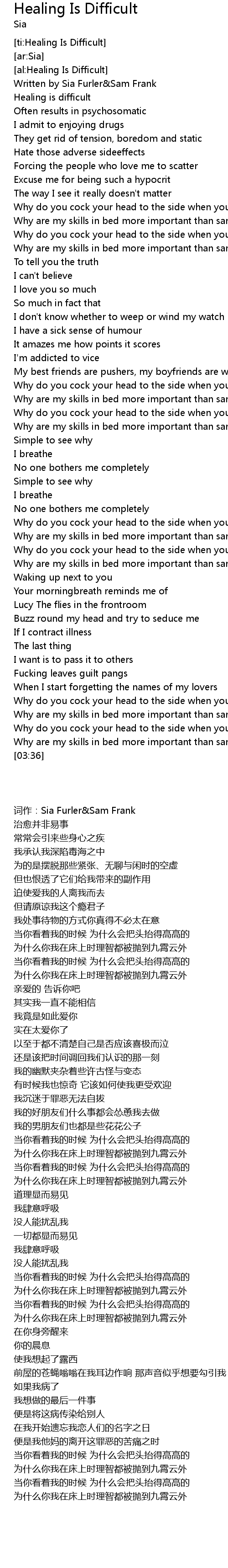 | [00:10] | Written by Sia Furler&Sam Frank |