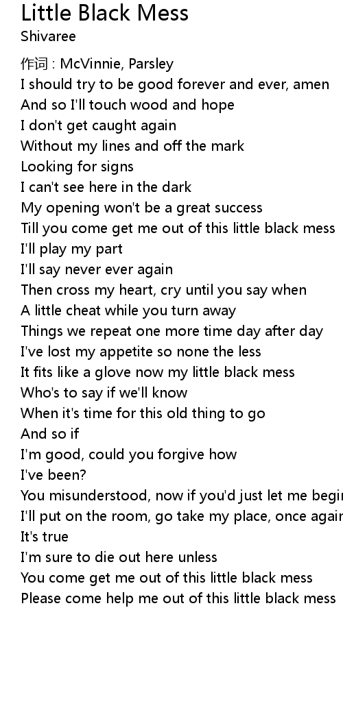 | Till you come get me out of this little black mess | |