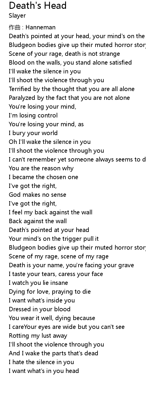 | Death's pointed at your head, your mind's on the trigger pull it | |