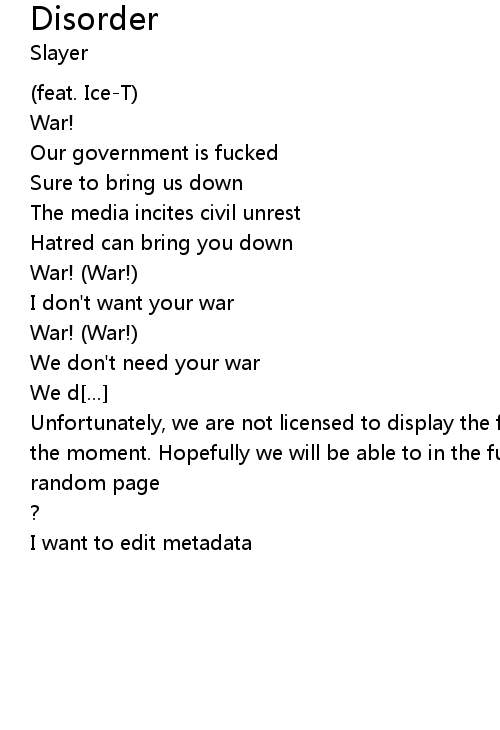 | Song | Disorder |