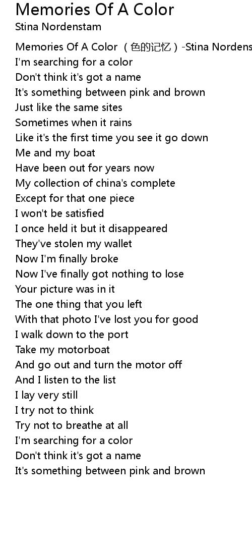 | [00:00.00] | Memories Of A Color sè de jì yì Stina Nordenstam |
