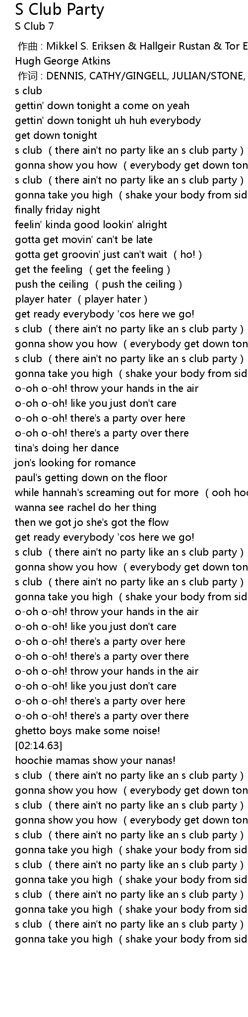 | [02:59.46] | s club (there ain't no party like an s club party) |