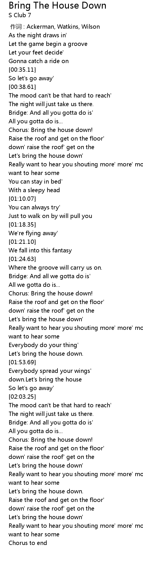 | [02:15.38] | Chorus: Bring the house down! |