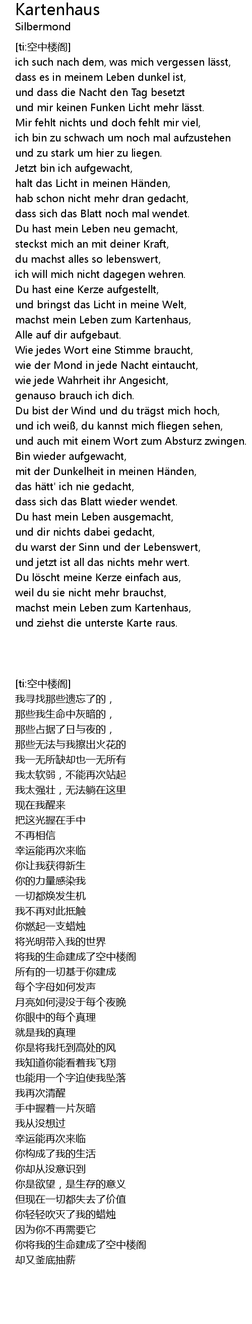 | [01:33.57] | machst mein Leben zum Kartenhaus, |