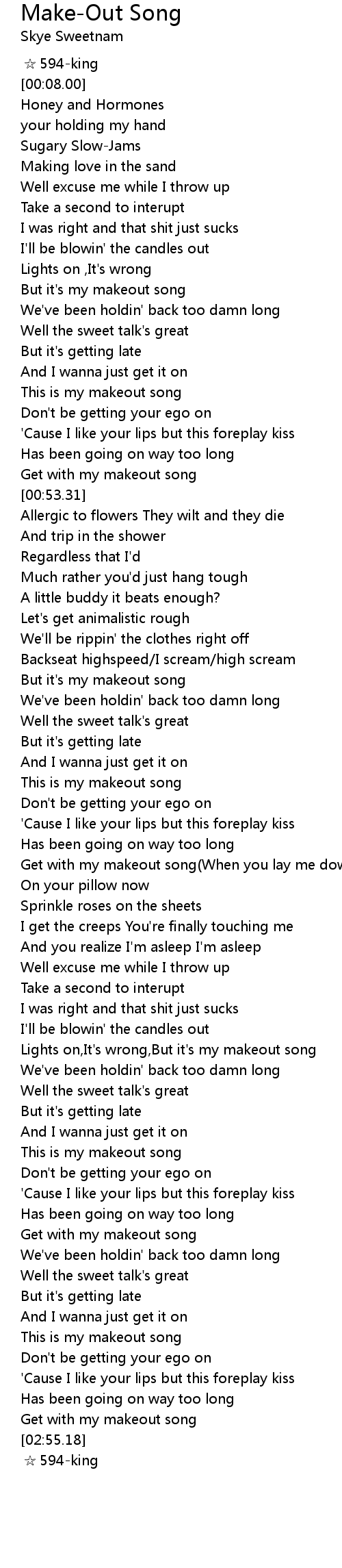 | [02:10.00] | Lights on, It' s wrong, But it' s my makeout song |