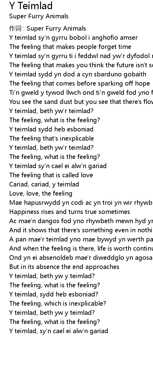 | Y teimlad, sy' n cael ei alw' n gariad |