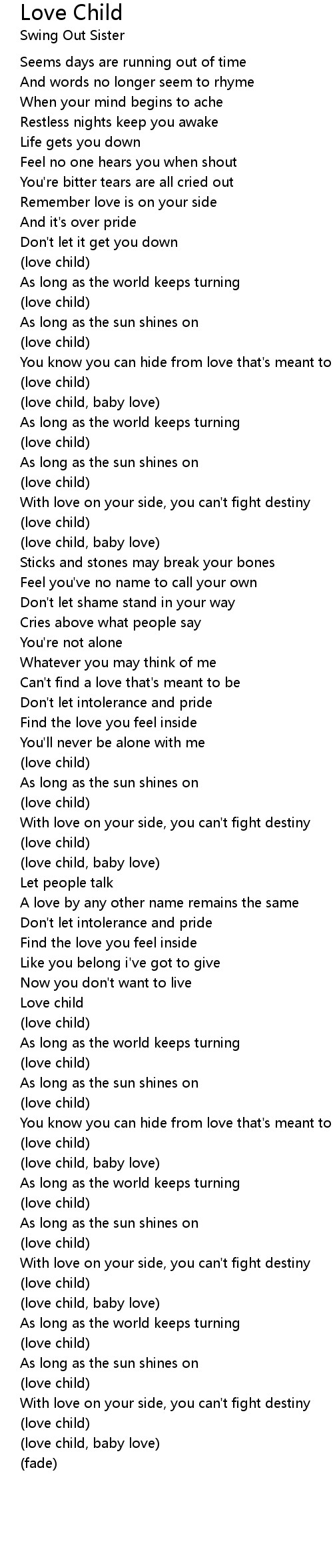 (love child, baby love) |