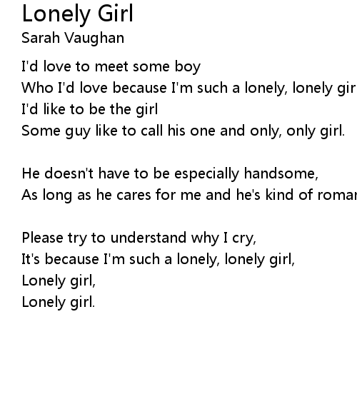 | Who I'd love because I'm such a lonely, lonely girl; | |