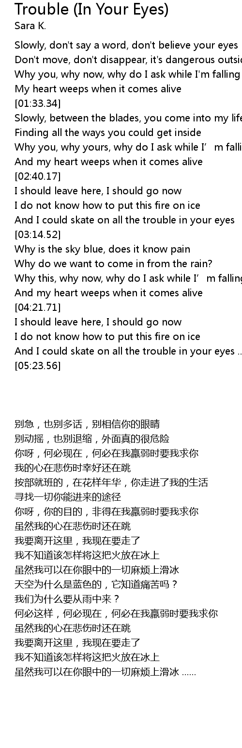 | Song | Trouble (In Your Eyes) |