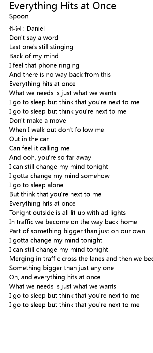 | Song | Everything Hits at Once |