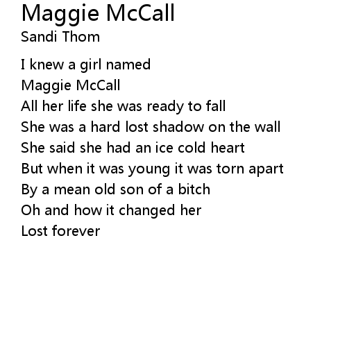 | Song | Maggie McCall |