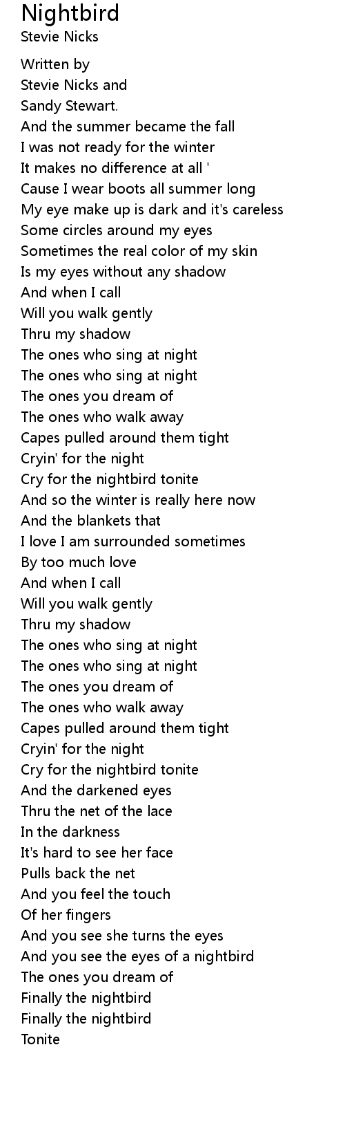 Cry for the nightbird tonite |